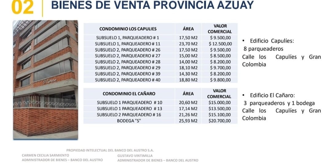 8 parqueaderos en edificio los capulies, y 3 parqueaderos en edificio el cáñaro en Cuenca